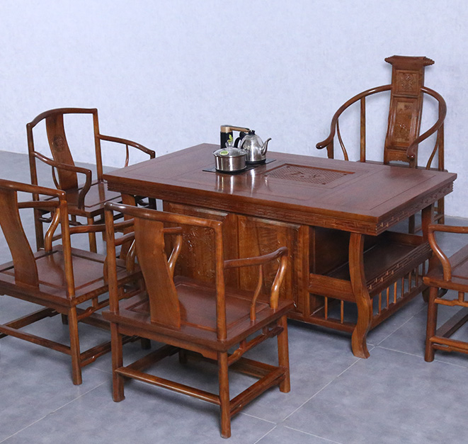 銘仁坊家具均為核桃木制作。核桃木,和道,木中君子,如玉溫潤,高古拙璞,內(nèi)斂含蓄,紋理若隱如現(xiàn),與微黃的顏色相匹配。核桃木堅硬而細密,分量適中性韌,不易開裂,受刀鑿雕刻,神韻可媲美黃花梨。長於深山低凹背陽面的核桃樹,成材期長,藉著大山清潤的濕氣,出落的挺直俊朗,深色年輪,油脂豐富,是專業(yè)的木材。